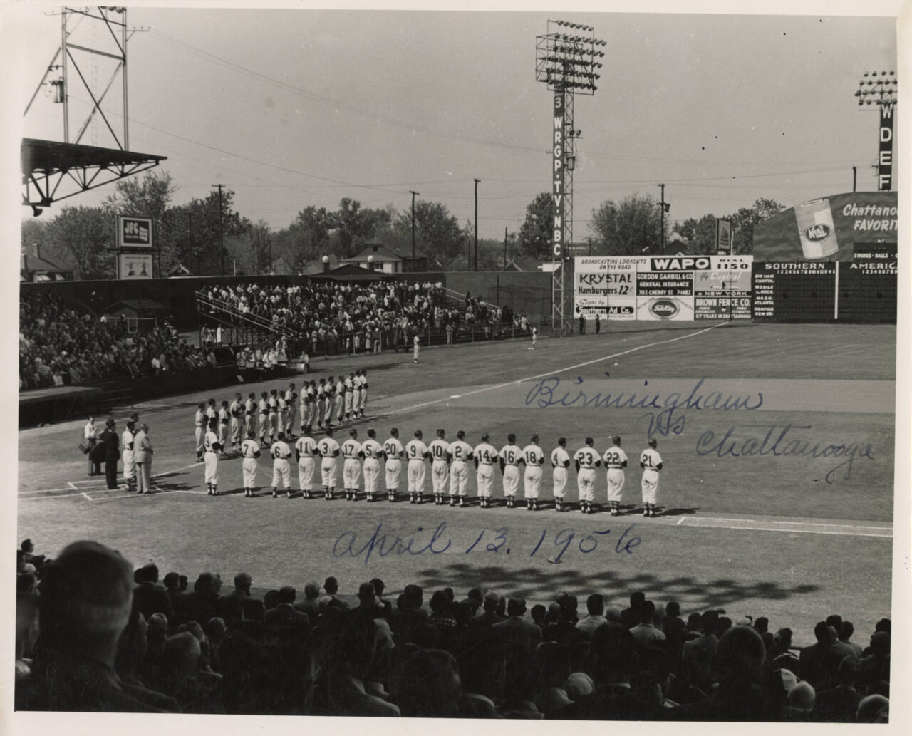 The 1952 team photo, she said, is an excellent representation of the collection “because it not only celebrates the team’s success but also captures the vibrant atmosphere of the stadium—with signs for local businesses like Rock City and news outlets like the Chattanooga News Free Press.”