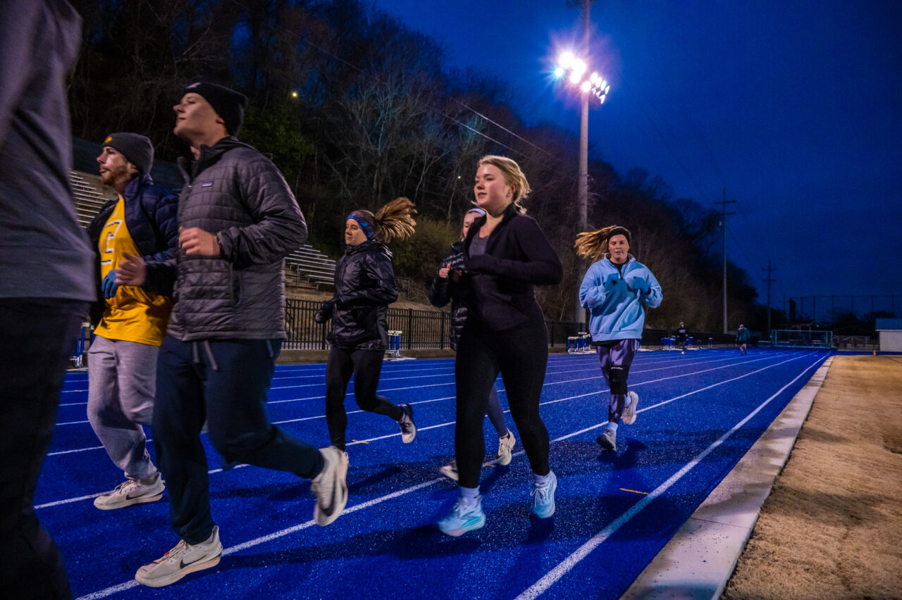 The Chattanooga Marathon Project group runs laps at Girls Preparatory School, training for the upcoming Chattanooga Marathon. Photo by Noah Camacho.