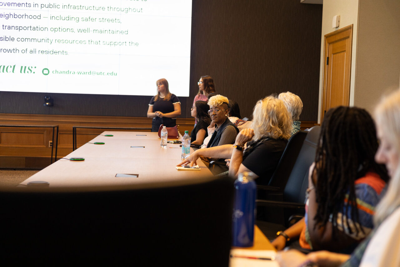 Hattie Martinek, a sophomore political science and public service major from Hendersonville, Tennessee, spoke about the group’s collaboration with housing developer Chattanooga Neighborhood Enterprise (CNE) in sending out a survey to residents.