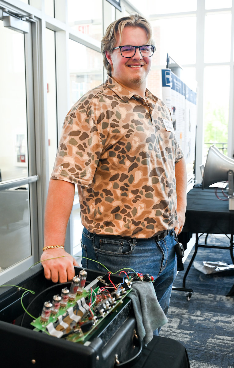 Areej Alghoul, a sophomore computer engineering major from Chattanooga; Michael Martin, a sophomore computer engineering major from Memphis; and Amy Guinac, a sophomore mechatronics engineering technology major from Chattanooga, were part of a team that developed the Pick-Grip—an assistive guitar pick holder designed to help a client with peripheral neuropathy continue playing the instrument he loves.