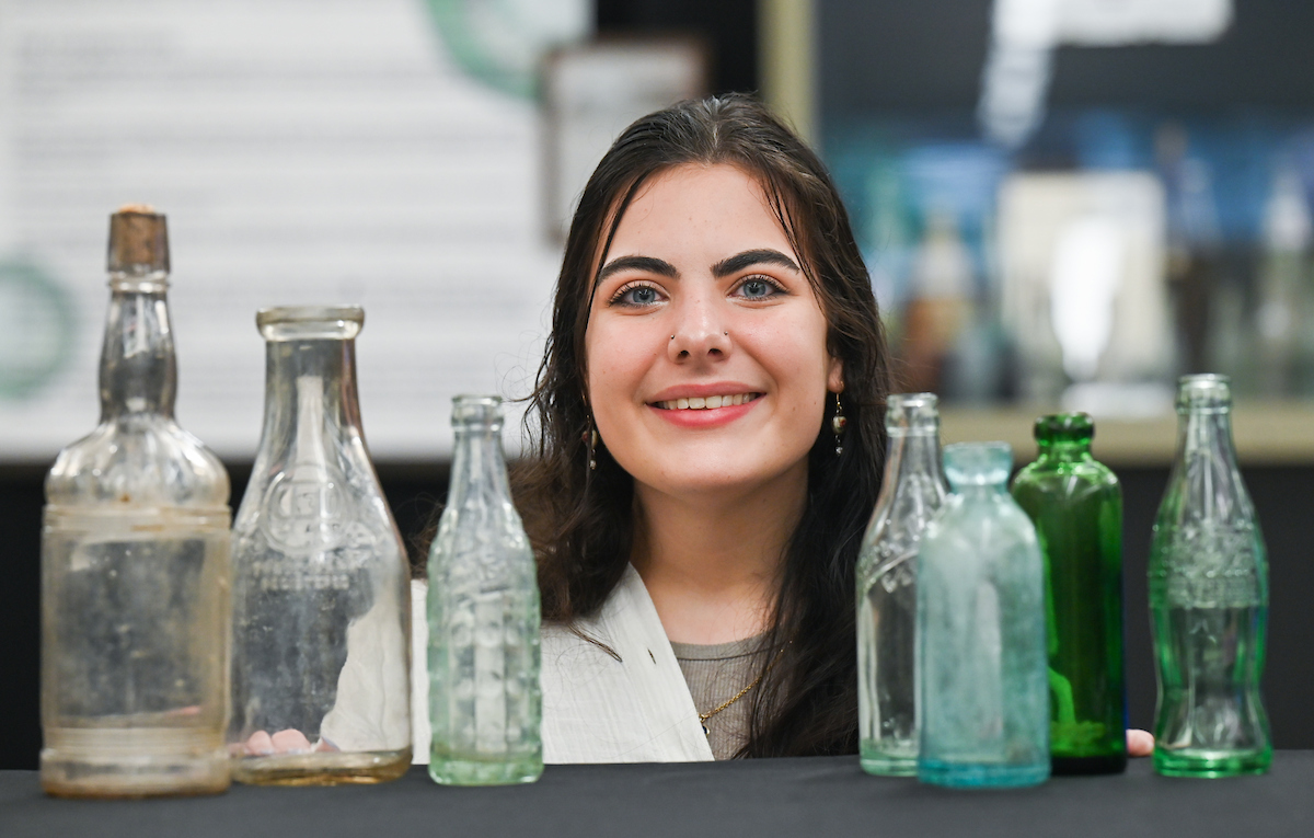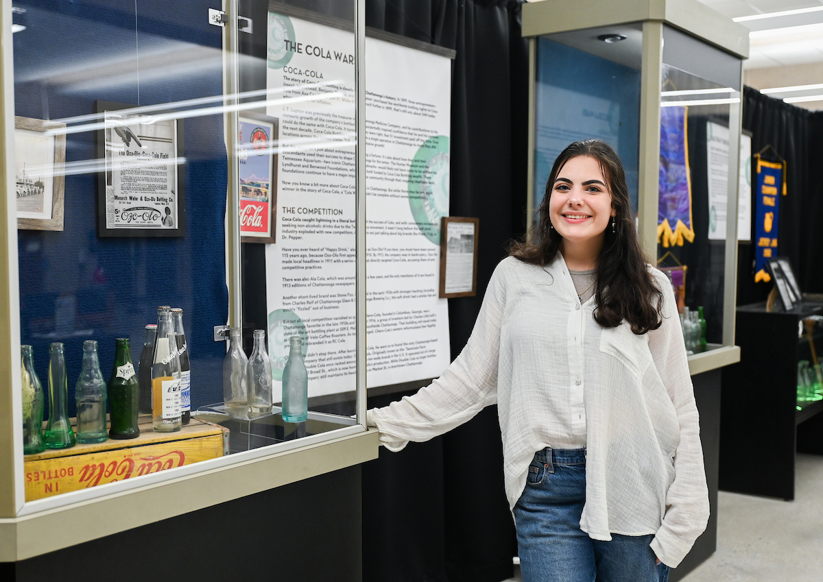 Early in her internship, Kleiner—who just completed her junior year at UTC—was invited to help curate a portion of the exhibit, “Glass from the Past,” which explores Chattanooga’s early 20th-century history of glass production.