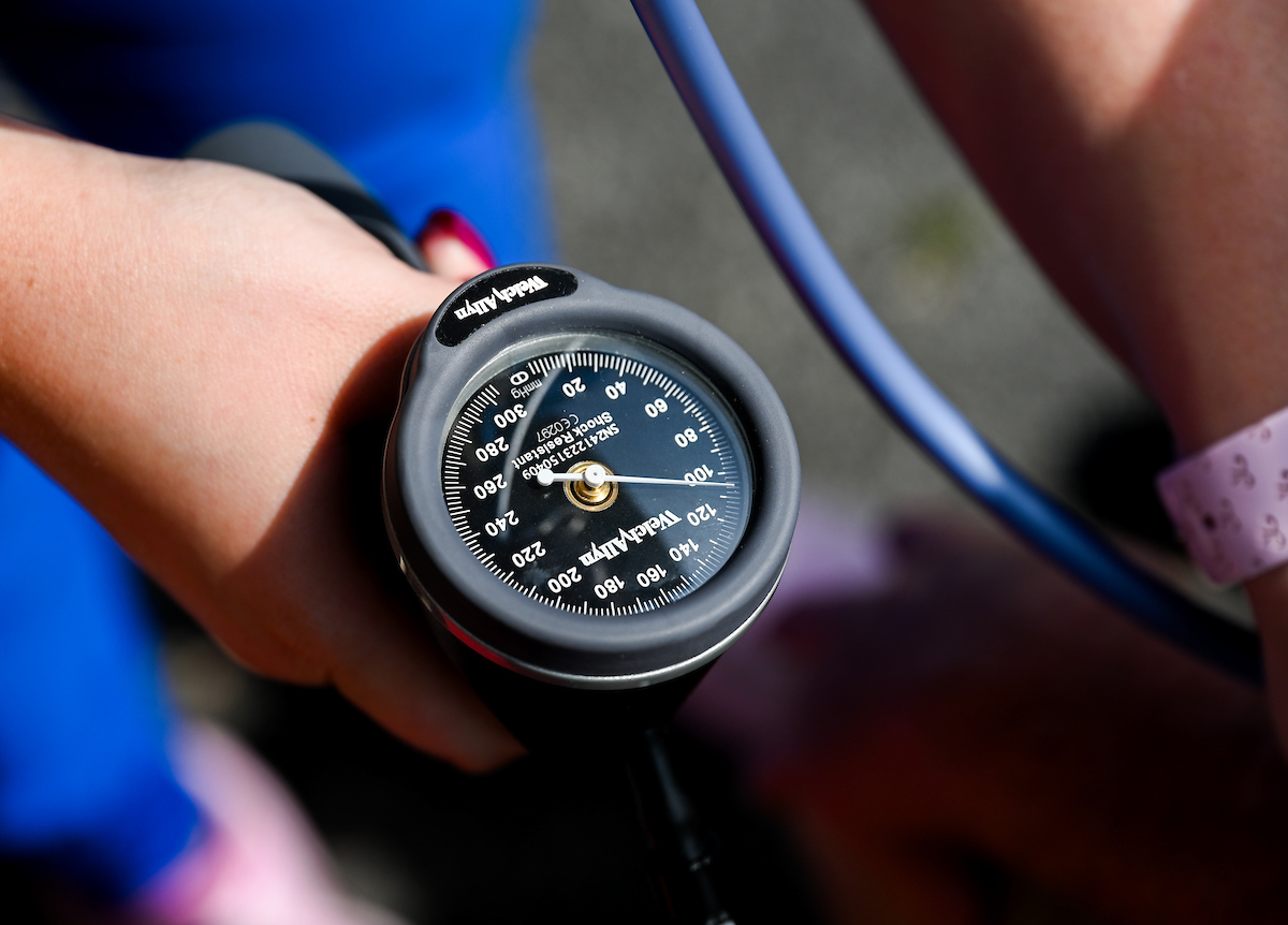 Carly Chastain takes a patient’s blood pressure.