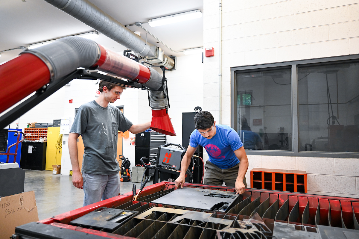 Logan McCollough and Eric Perez are two of the 12 students building the ATV to compete.