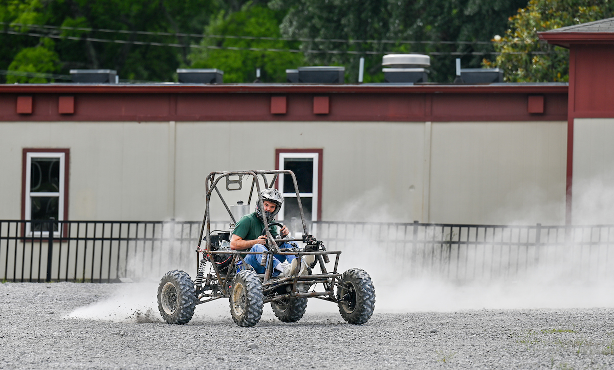 Senior Logan McCollough following a Baja car test drive on Wednesday, June 4, at the test track near the TVA dam.