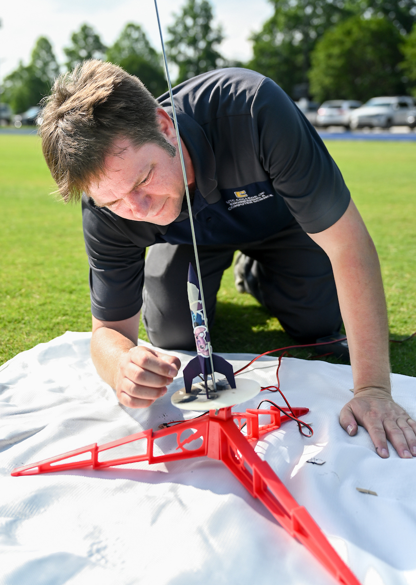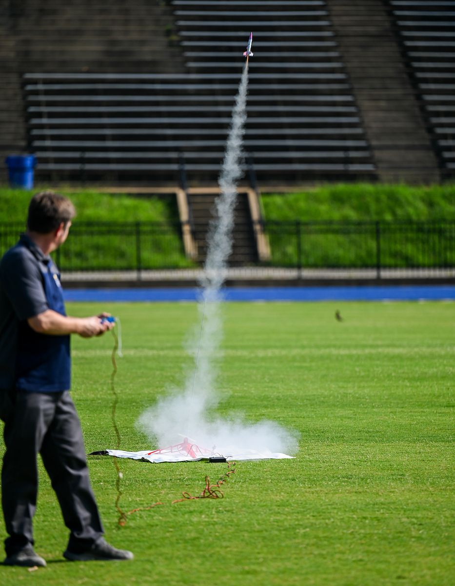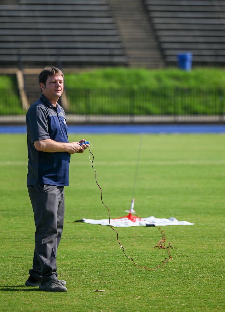 UC Foundation Associate Professor of Mechanical Engineering Trevor Elliott has been the Rocket Mocs faculty advisor since its inception. He was responsible for loading and launching the rockets while maintaining a safe distance from the launch site.