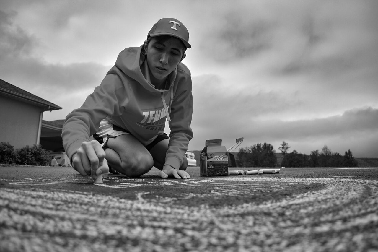 I was in a terrible mood the morning after, sad for those that lost so much and upset that this pandemic made me feel helpless. The world seemed dark and unfair, like everything that could go wrong did. When my brother Rian Scott asked me to chalk with him on the driveway, I somewhat rudely declined.