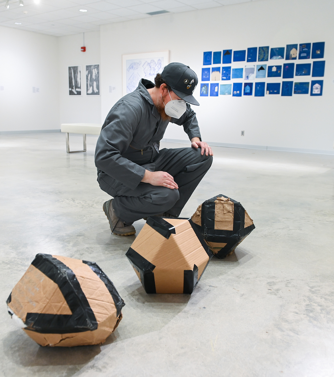 In the exhibit, one of the artists, Marc Boyson, will travel along city streets on “kickabouts.” He will be leaving from the UTC Fine Arts Center at 10 a.m. each Tuesday and Thursday and will kick a cuboctahedron—a 14-sided sculpture—around the city. When he returns to the Cress Gallery, he will leave the sculpture to become part of the exhibition.