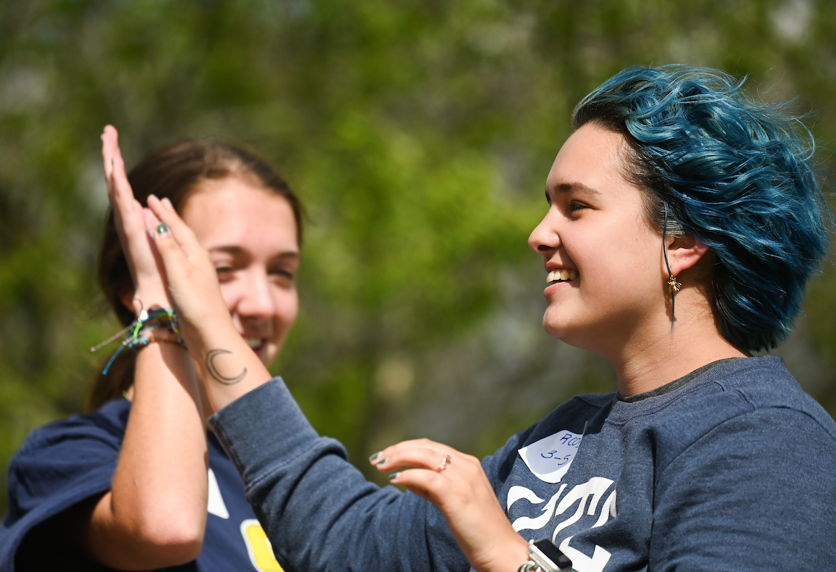 Teams from the Colleges of Business and Engineering faced off Thursday on Chamberlain Field for the first Field Games. The “heated” competition included egg and three-legged races, cup stacking, cornhole, tug of war and lots of laughing. The College of Business was the ultimate champ. In the photos below, Business is in the blue shirts and Engineering in the yellow.