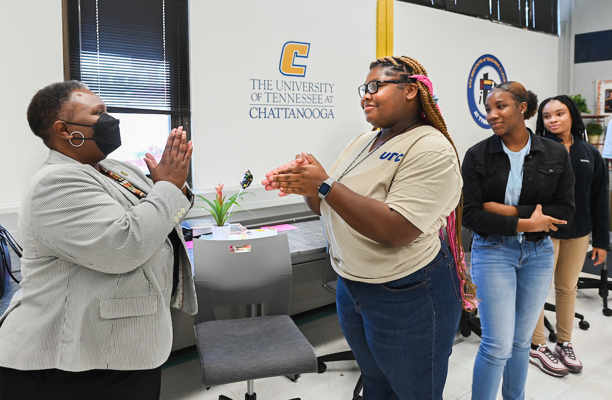 The clap-or-not-clap-or-clap-twice exercise was part of the Future Ready Institutes kickoff at Tyner on Sept. 14, 2022. The University of Tennessee at Chattanooga Teaching and Learning Institute, along with the EPB Institute of Technology and Networking and Tyner’s Institute of Health Sciences, participate in the program at Tyner.