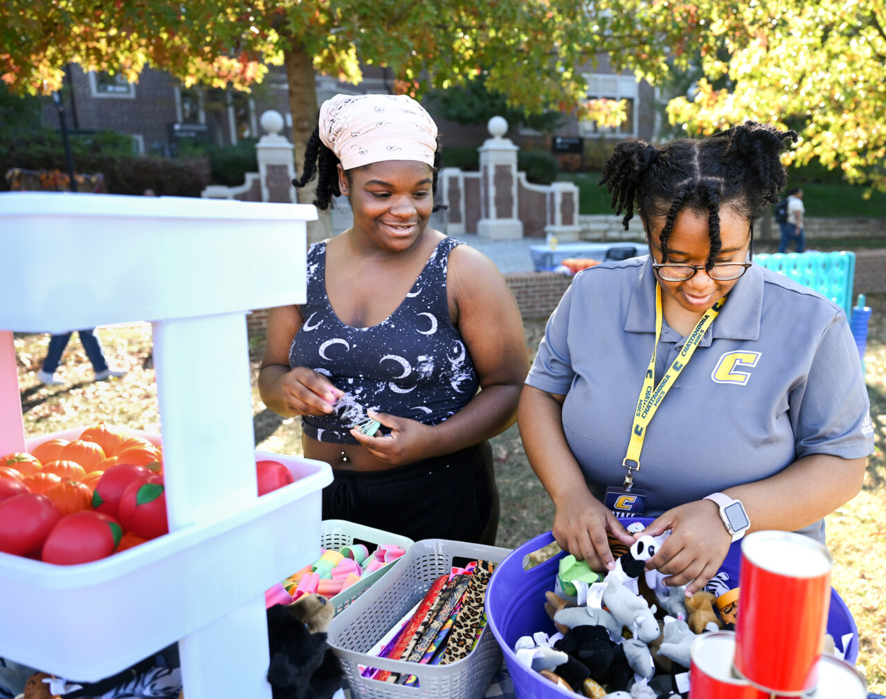 Ja’Toria Powell, left, and Olivia Miller attend the First Gen Week kickoff on Nov. 6. Photo by Angela Foster.