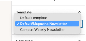 - Go to the “Templates” dropdown and select “Default/Magazine Newsletter”