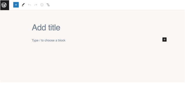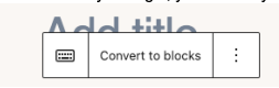 - Where it says, “Type / to choose a block”, add a Classic block to the content area